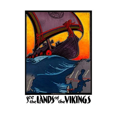 Wee Blue Coo Travel Scandinavia Viking Longship Wave Sea Sail USA Wall Art Print