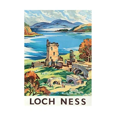 Wee Blue Coo Travel Scotland Castle Loch Ness British Railways Picture Wall Art Print