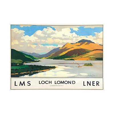 Wee Blue Coo Travel Scotland Loch Lomond Rail Wall Art Print