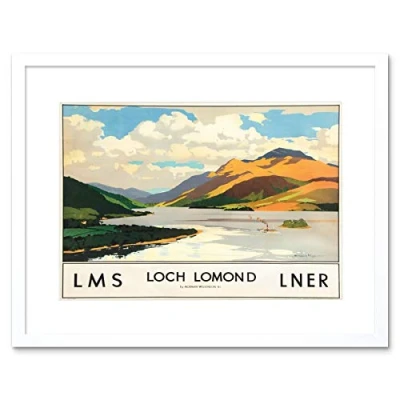 Wee Blue Coo Travel Scotland Loch Lomond Rails Art Picture Framed Wall Print