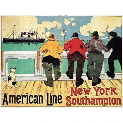 Wee Blue Coo Travel Ship Steamship American Line USA UK Southampton New York Art Print Poster Wall Decor 12X16 Inch