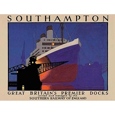 Wee Blue Coo Travel Southampton Dock Ship Boat Ocean Liner Crane England Art Print Poster Wall Decor 12X16 Inch