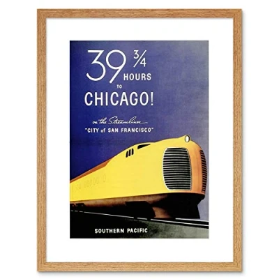 Wee Blue Coo Travel Southern Pacific Chicago Train Rail Vintage Advert Framed Wall Art Print