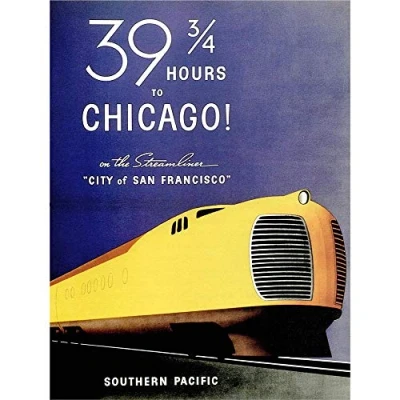 Wee Blue Coo Travel Southern Pacific Chicago USA Train Rail Vintage Advertising Art Print Poster Wall Decor 12X16 Inch