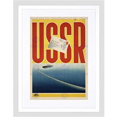 Wee Blue Coo Travel Soviet Union USSR Postcard Liner Ship Sea Framed Wall Art Print