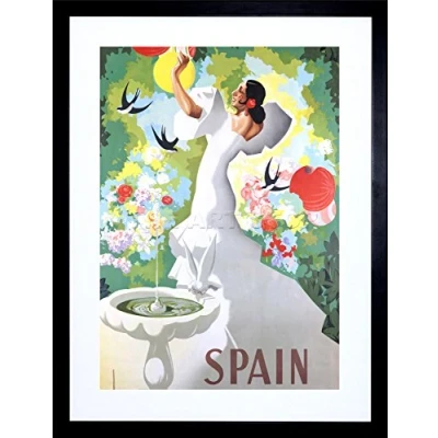 Wee Blue Coo Travel Spain Flamenco Dance Bird Bath Framed Wall Art Print