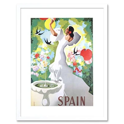 Wee Blue Coo Travel Spain Flamenco Dance Bird Bath Framed Wall Art Print