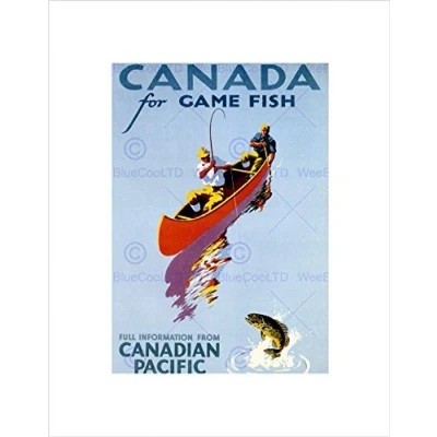 Wee Blue Coo TRAVEL SPORT CANADA FISHING ANGLING CANOE GAME FISH FRAMED ART PRINT B12X6528