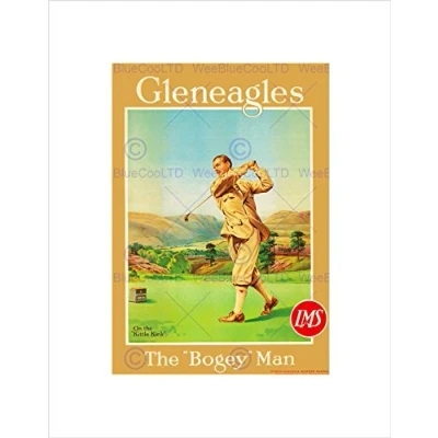 Wee Blue Coo Travel Sport Golf Gleneagles Scotland Bogey Rail Wall Art Print