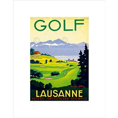Wee Blue Coo TRAVEL SPORT GOLF LAUSANNE SWISS RESORT ALPINE FAIRWAY FRAMED ART PRINT B12X6531