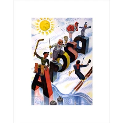 Wee Blue Coo Travel Sport Tourism Arosa Switzerland Alpine Ski Skiing Skiier Wall Art Print
