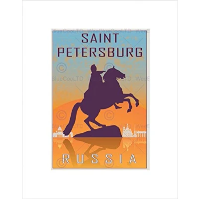 Wee Blue Coo TRAVEL ST PETERSBURG RUSSIA PETER GREAT STATUE CZAR TSAR FRAMED PRINT B12X8570