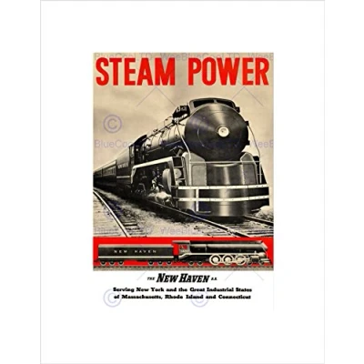 Wee Blue Coo TRAVEL STEAM TRAIN ENGINE RAIL TRACK NEW ENGLAND FRAMED ART PRINT B12X11434