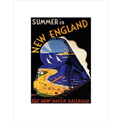 Wee Blue Coo Travel Summer New England Haven Rail Vintage Retro Ad Art Wall Print