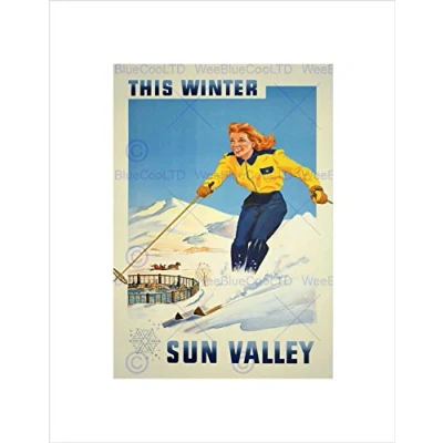 Wee Blue Coo TRAVEL SUN VALLEY SKIING WINTER SPORT SNOW IDAHOAD FRAMED ART PRINT B12X1718