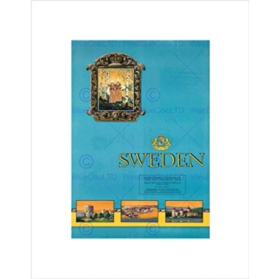 Wee Blue Coo TRAVEL SWEDEN SCENERY CASTLE COSTUME RAIL TRAIN FRAMED ART PRINT MOUNT B12X7328
