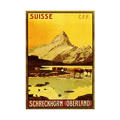 Wee Blue Coo Travel Switzerland Alps Cow Lake Schreckhorn Peak Wall Art Print
