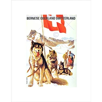 Wee Blue Coo TRAVEL SWITZERLAND BERNESE OBERLAND POLAR DOGS FRAMED ART PRINT MOUNT B12X10209