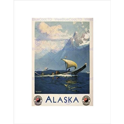 Wee Blue Coo Travel Tourism Alaska Pacific Boat Mountain USA Wall Art Print
