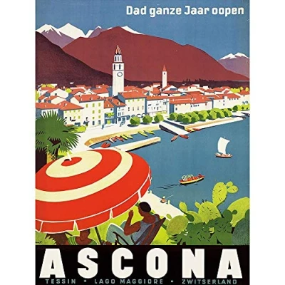 Wee Blue Coo Travel Tourism Ascona Swiss Alpine Resort Lake Maggiore Art Print Poster Wall Decor 12X16 Inch