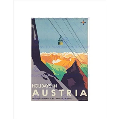 Wee Blue Coo TRAVEL TOURISM AUSTRIA ALPINE CABLE CAR DECO BLACK FRAMED ART PRINT B12X7272