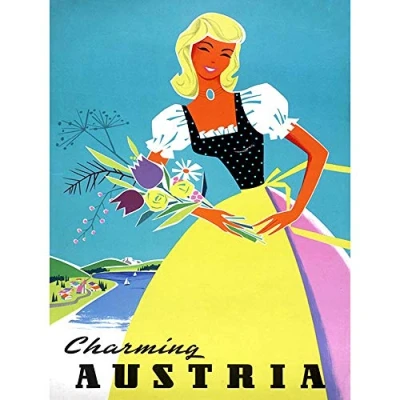 Wee Blue Coo Travel Tourism Austria Traditional Costume Flowers Art Print Poster Wall Decor 12X16 Inch