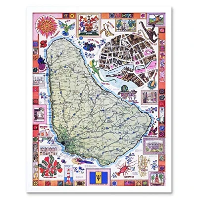 Wee Blue Coo Travel Tourism Barbados Caribbean Tropical Map Vintage Advertising Art Print Framed Poster Wall Decor 12X16 Inch