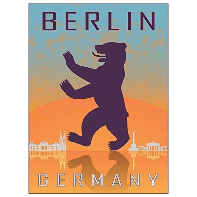 Wee Blue Coo Travel Tourism Berlin Germany Heraldic Rampant Bear Coat Arms Art Print Poster Wall Decor 12X16 Inch