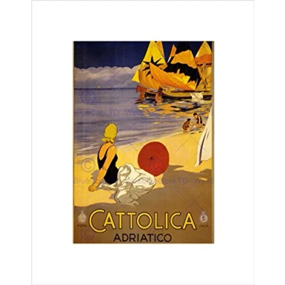 Wee Blue Coo TRAVEL TOURISM CATTOLICA ITALY SUN SEA BEACH SAND FRAMED ART PRINT B12X10587