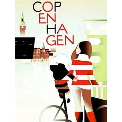 Wee Blue Coo Travel Tourism Copenhagen Denmark Girl Child Bike Church Spire Art Print Poster Wall Decor 12X16 Inch