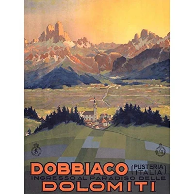 Wee Blue Coo Travel Tourism Dobbiaco Italy Dolomites Mountain Art Print Poster Wall Decor 12X16 Inch