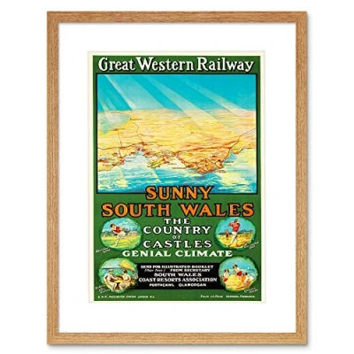 Wee Blue Coo Travel Tourism Gwr Railway Wales Sport Fun Sun Map Framed Wall Art Print