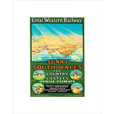 Wee Blue Coo Travel Tourism Gwr Railway Wales Sport Fun Sun Map Wall Art Print