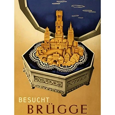 Wee Blue Coo Travel Tourism Historic Belgium Visit Brugges Castle Music Box Art Print Poster Wall Decor 12X16 Inch