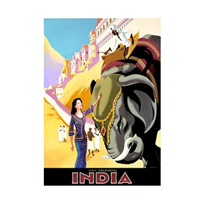 Wee Blue Coo Travel Tourism India Elephant Mahout Woman Walled City Wall Art Print