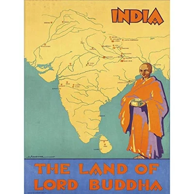 Wee Blue Coo Travel Tourism India Land Buddha Map River Art Print Poster Wall Decor 12X16 Inch