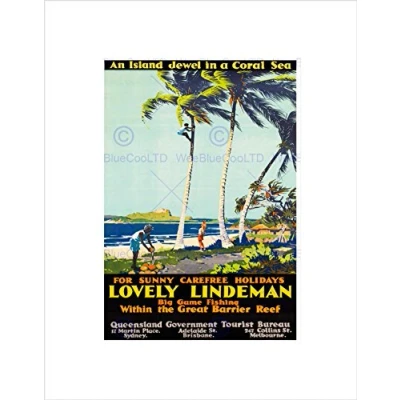 Wee Blue Coo TRAVEL TOURISM LINDEMAN GAME FISHING REEF AUSTRALIA FRAMED ART PRINT B12X7308