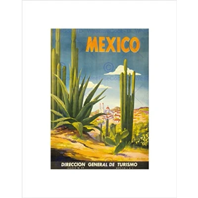 Wee Blue Coo TRAVEL TOURISM MEXICO CACTUS DESERT SUN VILLAGE FRAMED ART PRINT MOUNT B12X11357
