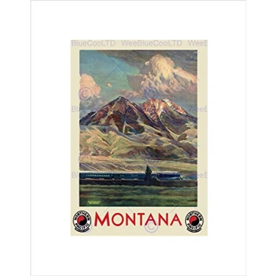 Wee Blue Coo TRAVEL TOURISM MONTANA STATE TRAIN MOUNTAIN USA FRAMED ART PRINT B12X7972