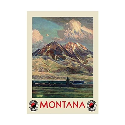 Wee Blue Coo Travel Tourism Montana State Train Mountain USA Wall Art Print