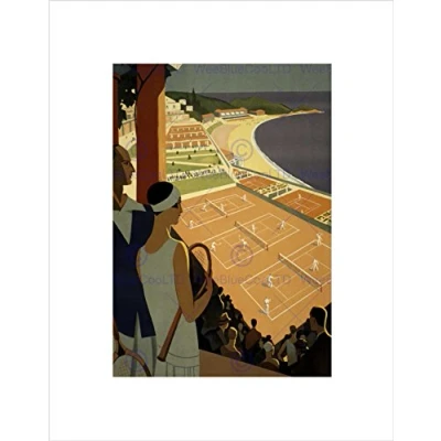 Wee Blue Coo TRAVEL TOURISM MONTE CARLO MONACO BEACH TENNIS SEA FRAMED ART PRINT B12X10597