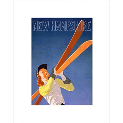 Wee Blue Coo TRAVEL TOURISM NEW HAMPSHIRE WINTER SPORT SKI FRAMED ART PRINT B12X11362