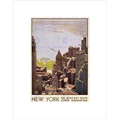 Wee Blue Coo TRAVEL TOURISM NEW YORK MANHATTAN CITY HARBOUR FRAMED ART PRINT B12X11363
