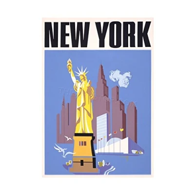 Wee Blue Coo Travel Tourism New York USA Liberty Statue Manhattan Wall Art Print