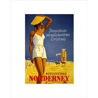 Wee Blue Coo TRAVEL TOURISM NORDERNEY BEACH GERMANY SUN SAND SEA FRAMED ART PRINT B12X10601