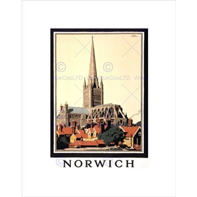 Wee Blue Coo TRAVEL TOURISM NORWICH CATHEDRAL NORFOLK UK NEW FRAMED ART PRINT MOUNT B12X11365