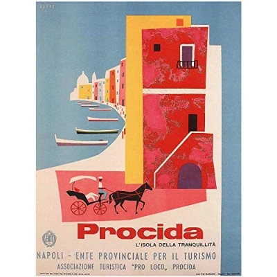 Wee Blue Coo Travel Tourism Procida Naples Italy Boat Sea Horse Art Print Poster Wall Decor 12X16 Inch