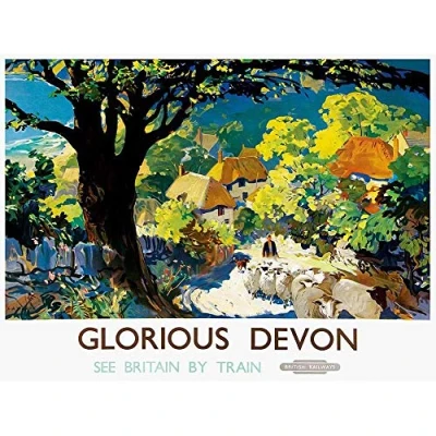 Wee Blue Coo Travel Tourism Railway Devon England UK Glorious Village Tree Art Print Poster Wall Decor 12X16 Inch