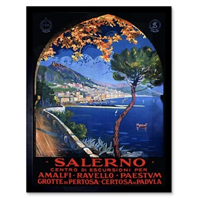 Wee Blue Coo Travel Tourism Salerno Mediterranean Italy Vintage Advertising Art Print Framed Poster Wall Decor 12X16 Inch