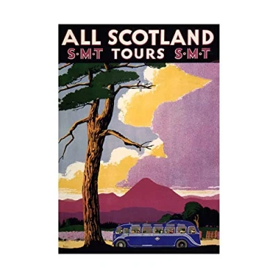 Wee Blue Coo Travel Tourism Scotland Bus Scenery Mountain Tree Picture Wall Art Print